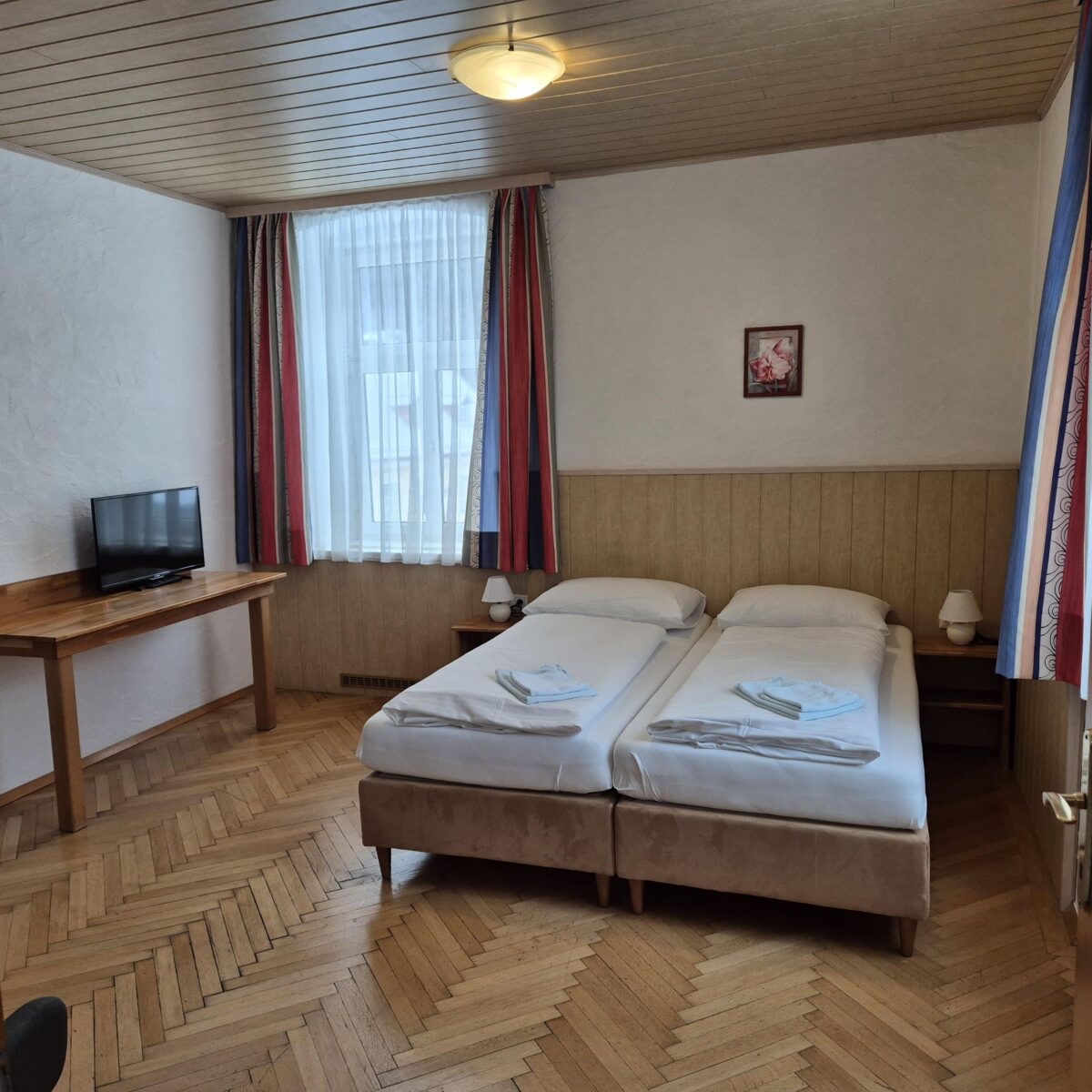 Ausgestattet ist dieses mit einem Schlafzimmer, einem Wohn-Schlafzimmer, einer kleinen Küche, Bad, WC, Kabel TV und gratis W-LAN. Gitterbetten stellen wir Ihnen nach Bedarf natürlich gerne zur Verfügung.